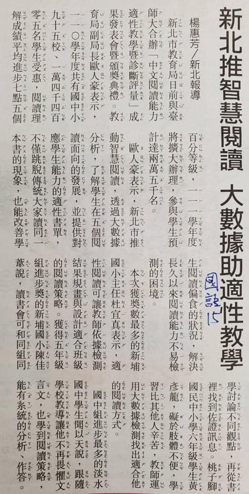 https://www.ner.gov.tw/news/62f32793d75e9f00074fb1b1 - 新北推動智慧閱讀 大數據助適性教學(國語)