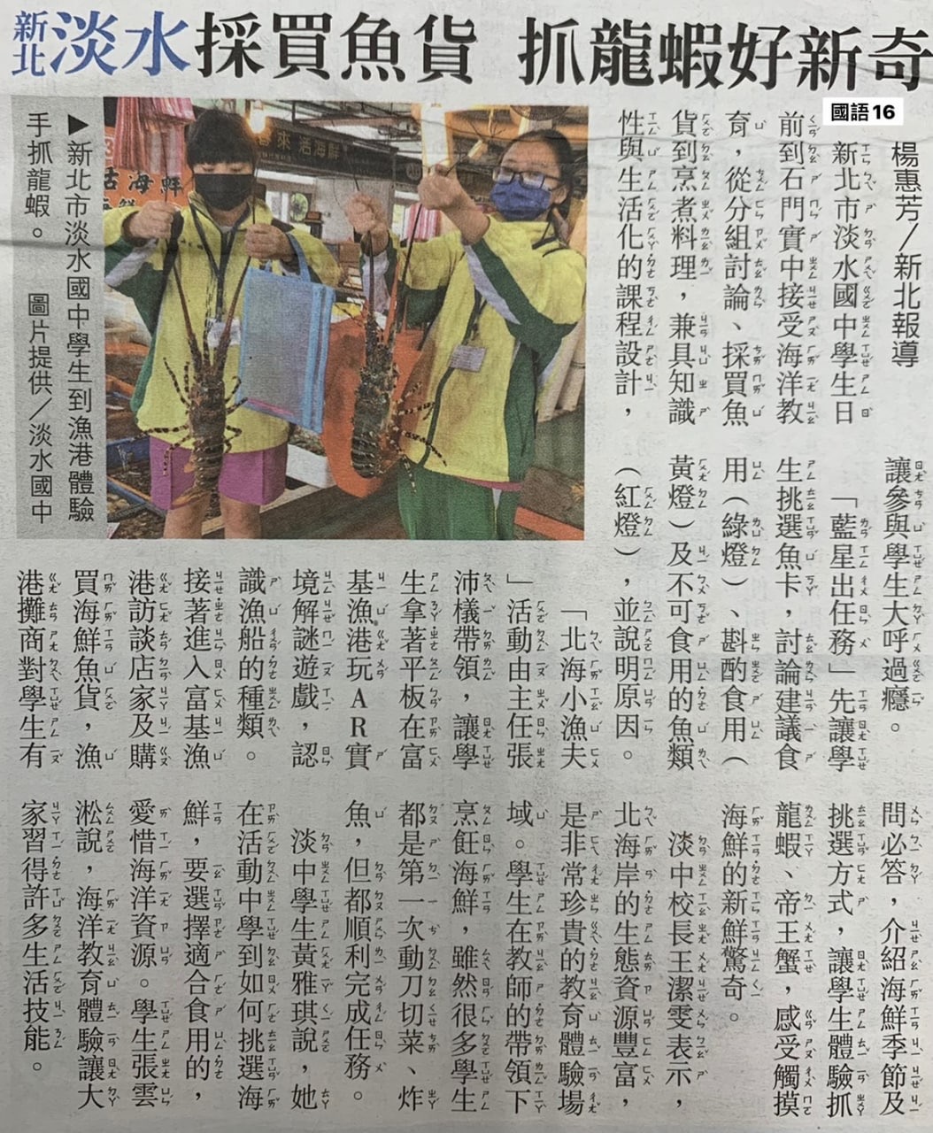 https://www.ner.gov.tw/news/6347bc5df088c00007b00ddc - 石門實中攜手淡水國中藍星出任務 海洋小達人一日體驗(中華日報)