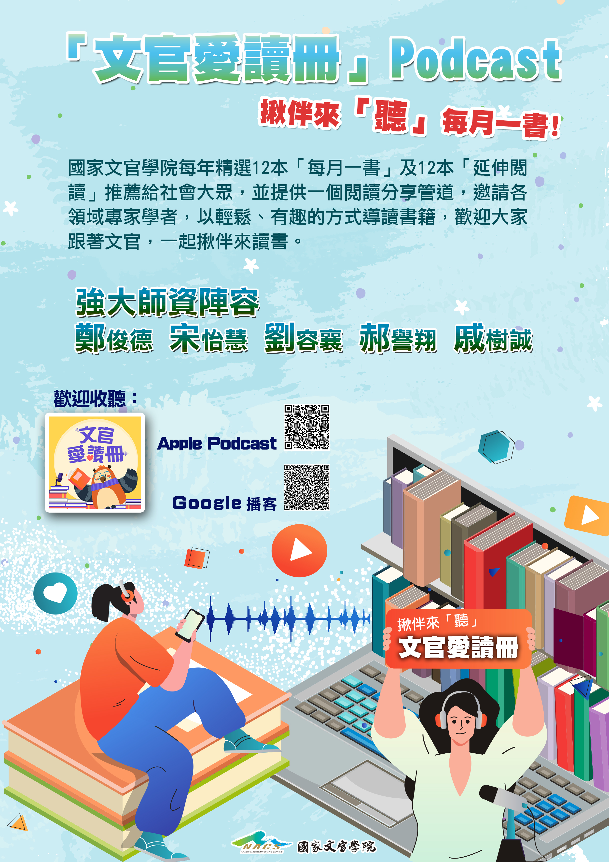 113年度「每月一書」及「延伸閱讀」專書導讀課程已於「e等公務園+學習平臺」及「文官愛讀冊」Podcast頻道上架,請同仁多加利用