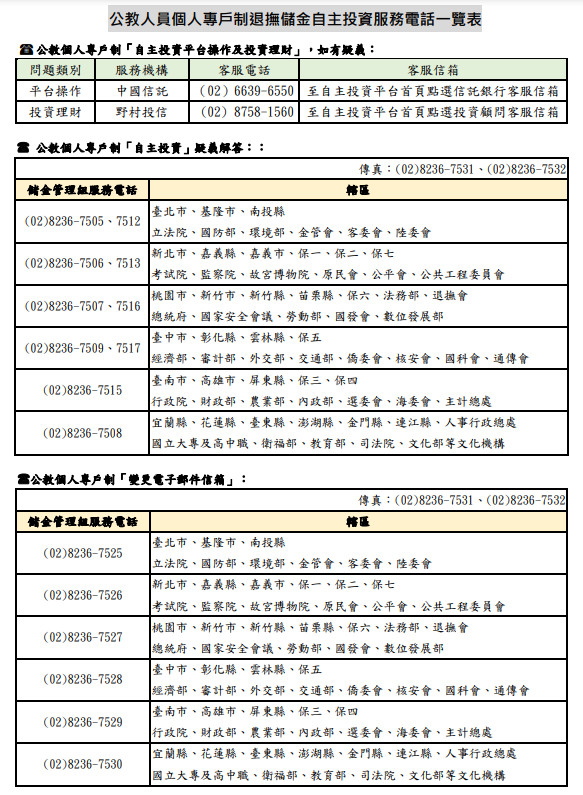 轉知有關民國114年1月1日開辦公教人員個人專戶制退撫儲金自主投資作業相關事宜