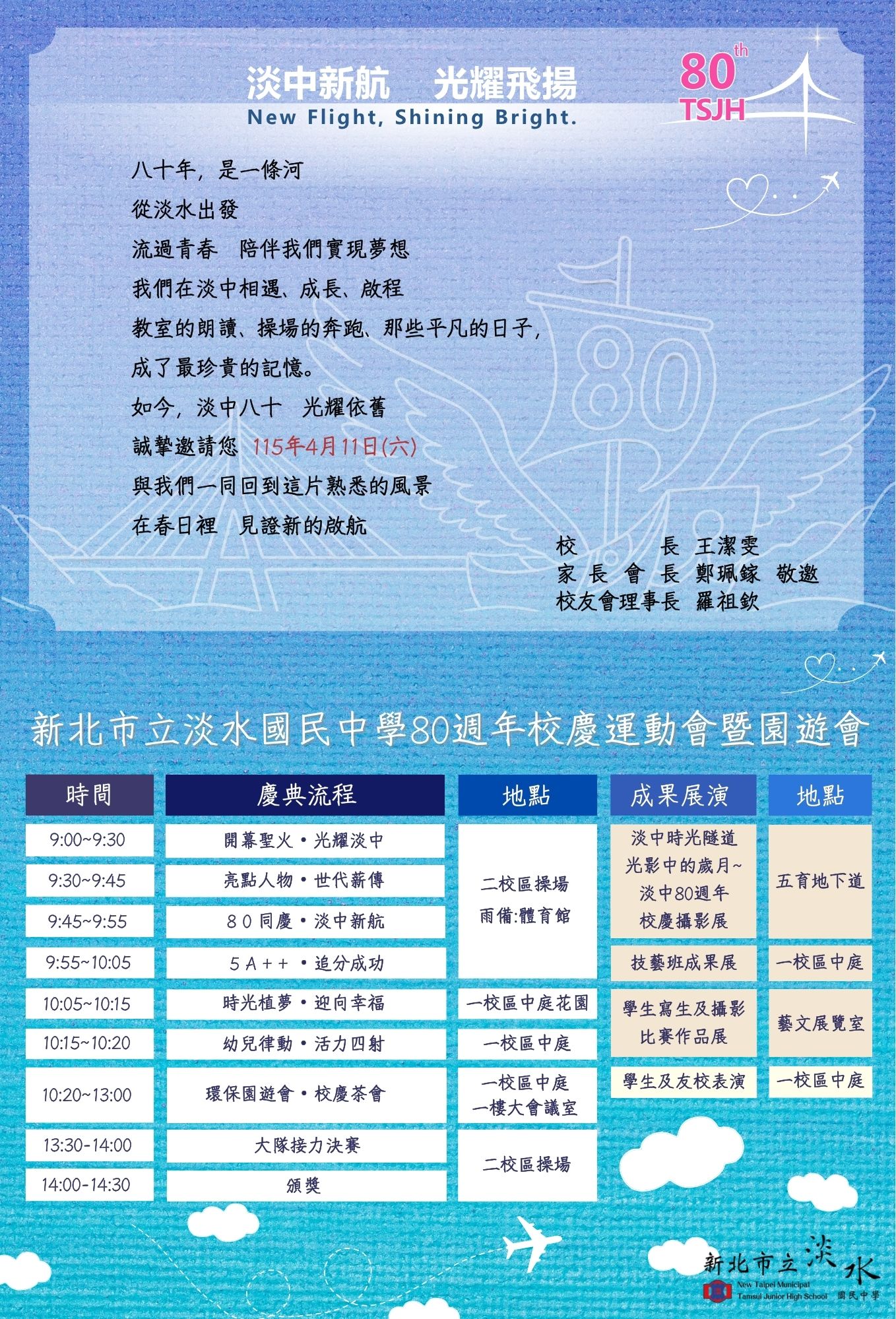 淡水國中80週年校慶運動會暨園遊會來囉!