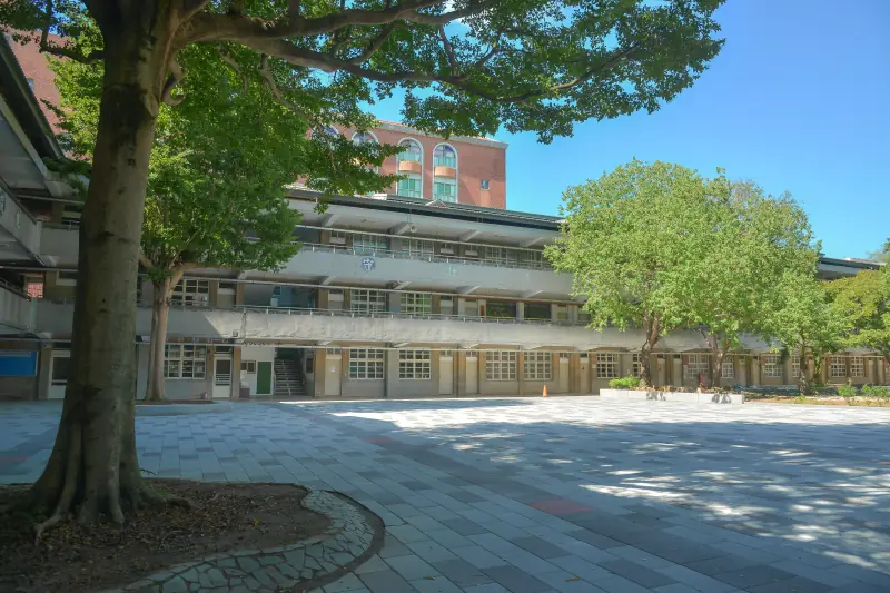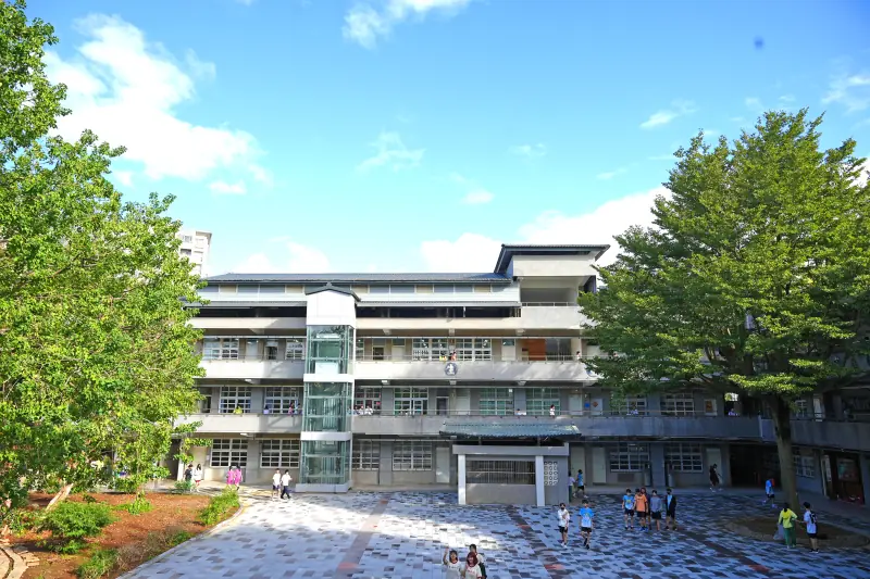忠孝樓前:走過透水磚長廊