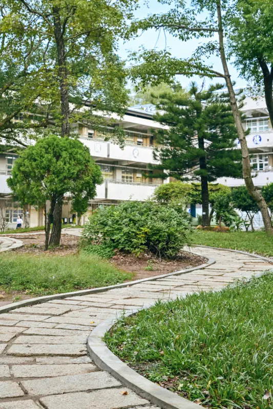 仁愛樓與和平樓交界:迴廊盡頭的風景